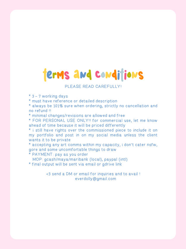 hello! you can call me kei, 23 y/o, a self-thought artist from the Philippinesair sign entj-a girlie who loves art, cute things and kpop (ults: bts, svt & en-)can draw during rest days or free time only (working gurly alr)language | fil ✓ eng ✓software | procreate & ibisPaint Xwork/comms experiences: